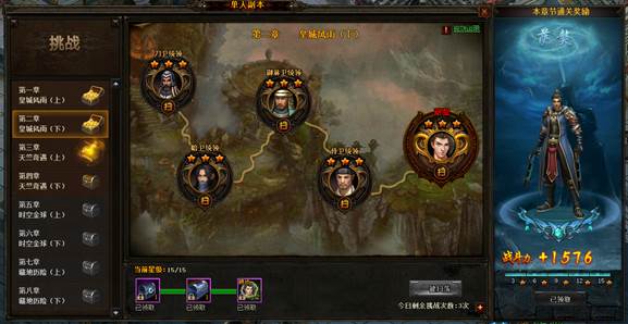 单人副本是游戏中的能力副本,随着玩家能力的增长,玩家的副本进度会越来越深入。副本主要参出装备升级材料和冰侠升级材料。在一个章节中,玩家达到的三星评价越多,得到的奖励越丰厚。