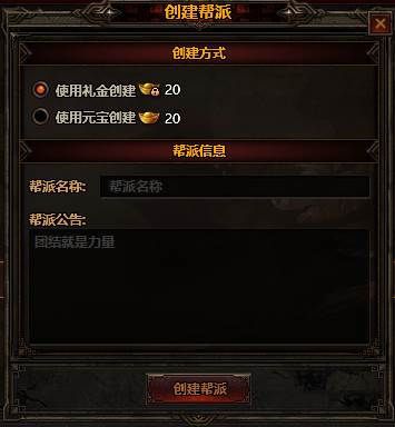 帮派一共分为5个等级,初始创建时帮派等级为1,创建时需要消耗50礼金或50元宝。