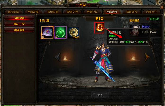 帮派试炼是帮派的副本玩法,帮派成员每天都可挑战一次;