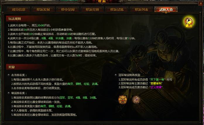 武林大会是帮派的主要竞争玩法,全服排名前16的帮派可参加;