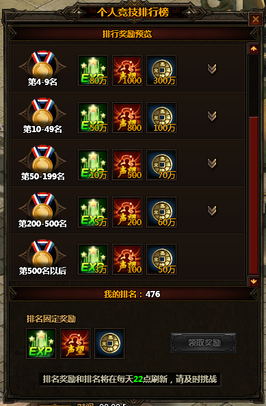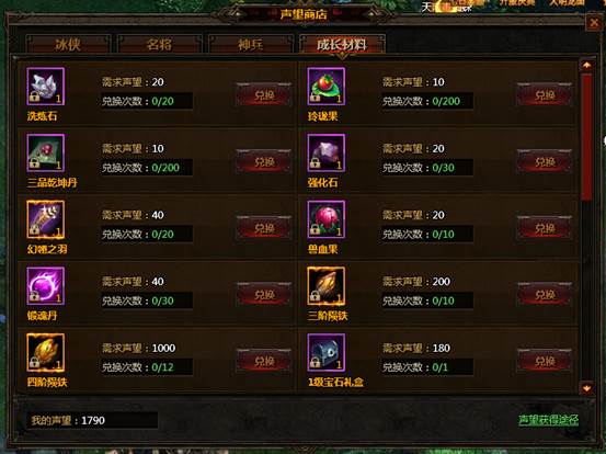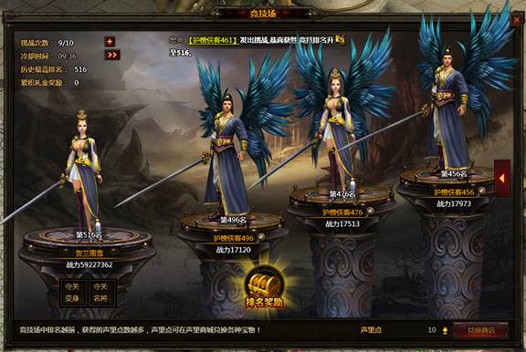 参与竞技场可获得“声望”奖励,可用于竞技场声望商店兑换大量稀有道具: