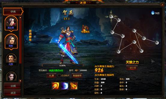冰侠系统为本游戏的核心玩法之一,激活的变身能直接给玩家增加属性,并且变身能不断强化,增加属性。