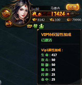 另外,加入帮派和成为Vip后都有buff属性加成,提升战力。