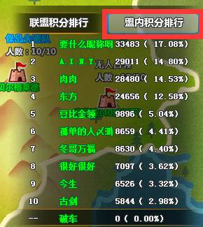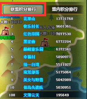 ·活动内有联盟积分排行榜、盟内积分排行榜。