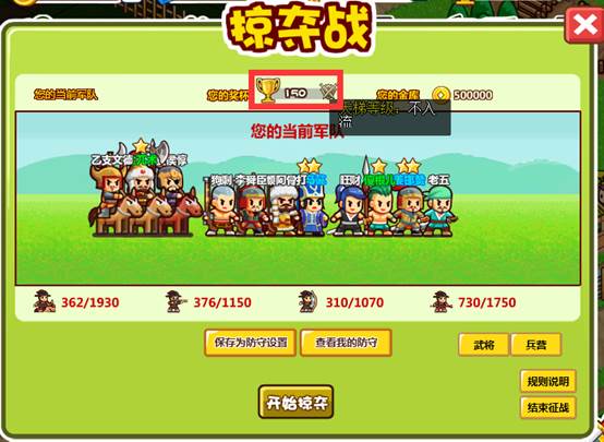·可以将当前的军队,保存为防守设置(避免兵力损失导致防守吃亏)。
