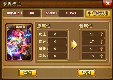 《弹弹堂2》卡牌的强大之处不仅仅来源于原属性与卡槽的属性,还得益于卡牌洗点。卡牌的原属性通常都是0,但经过洗点之后,属性值飙升,让你眼前一亮。当然,卡牌的洗点也是需要工具的哦。只要卡魂值足够,就可以进行卡牌洗点。
