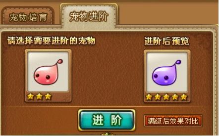资质较好的宠物进阶之后的宠物除了保留进阶以前的属性,在等级下降的同时会提高宠物成长资质。随着进阶宠物的等级提高,属性会有质的飞跃。另外还有一则惊喜,进阶之后的宠物还有会有额外的培育机会哦。看到这里,大家激动了有木有!