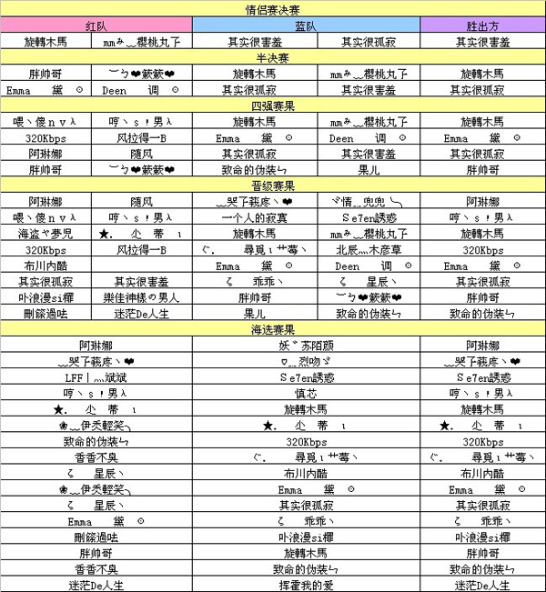 2、 每天的比赛结果将在第二天下午16:00前在官网公布,活动奖励在全服活动结束后3~5个工作日内统一发放。届时将发放实际出战者的奖励(如决赛、4强对决阶段,参赛一方的情侣未能出战,则不获得奖励。如比赛过程中掉线,则可获得对应名次的奖励。)