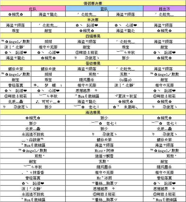 恭喜′尐肚兜﹏和 海盗ヤ陨落,成为情侣挑战赛"贵族学园"服务器的冠军情侣。