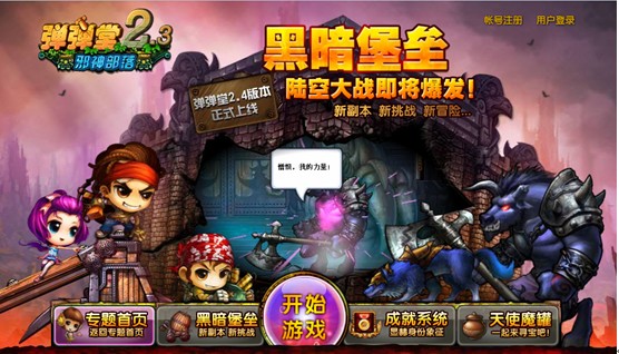 2.4版本隆重上线。新增黑暗城堡副本,击败恶魔军团首领米诺陶诺斯将有机会获得神秘新武器,难度越高的副本,奖励也会越丰厚,黑暗城堡副本将诞生出弹弹堂首个飞行BOSS,陆空大战一触即发;