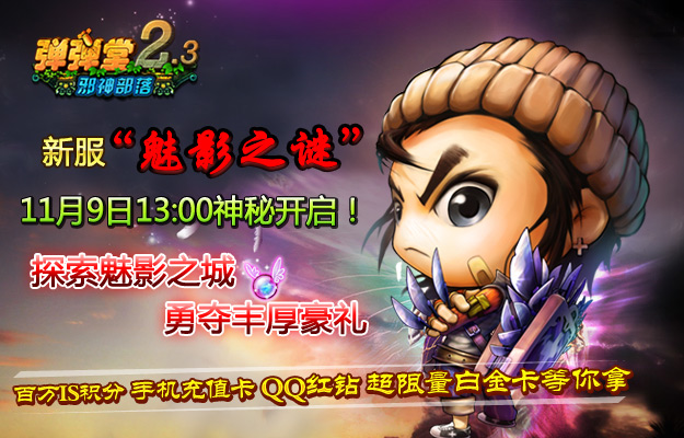 弹弹十一月精彩无限!揭开神秘魅影之谜,全新版本,全新副本,超多公会集结于此!激情战斗一触即发!谁将统领全新弹弹王国,谁将是弹弹第一强者。一切谜底尽在IS《弹弹堂》11月9日13:00新服“魅影之谜”。