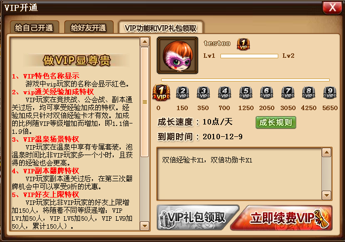 VIP特权可谓是福利多多,用最少的钱换取最多的福利,这可不是所有游戏都能做到的哦! 想要在游戏中获得更多的战斗经验么?想要体验到更多的游戏功能么?那么就来加入《弹弹堂》2.5.0版本的VIP行列中来吧!