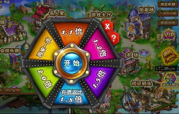 活动期间所有玩家可获得一次开启转盘机会,点击“开始”即有机会获得不同充值返比,最高充值返比为2.0倍,充值后可获得最高返点额度为10000勋章,如:弹友A通过幸运大转盘获得1.5倍充值返比,并通过官方充值渠道充值10000点券,玩家最终获得10000点券和返点的5000勋章。