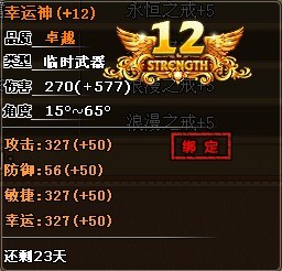 能量之源:激活潜能攻击+80、防御+80、敏捷+80、幸运+80,有效期7天。