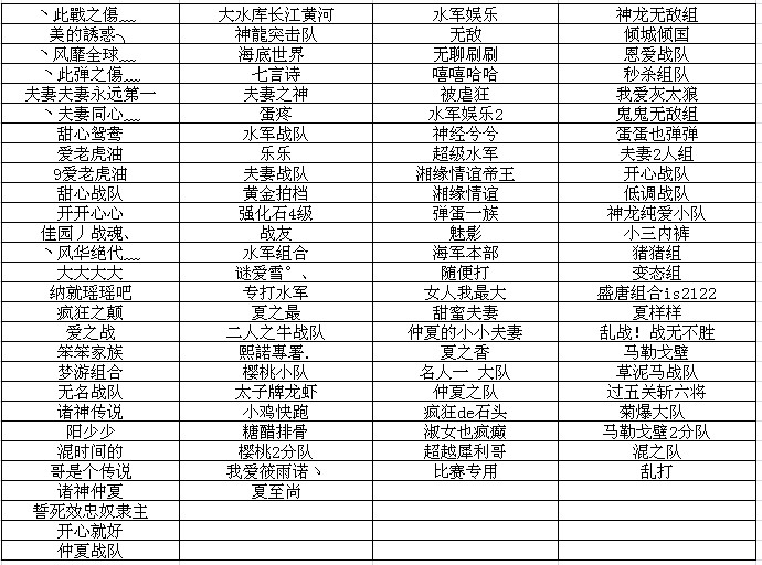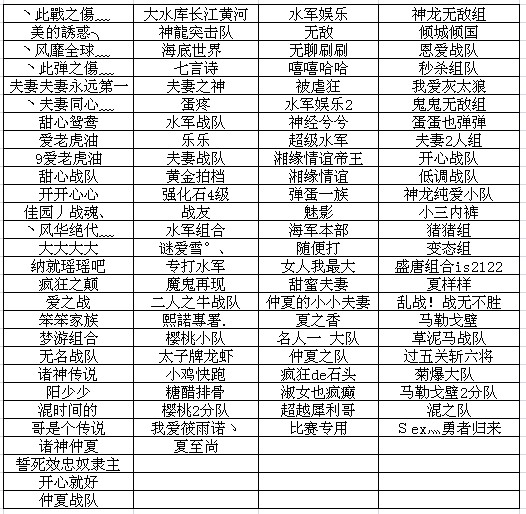 进入各区争霸赛战队名称: