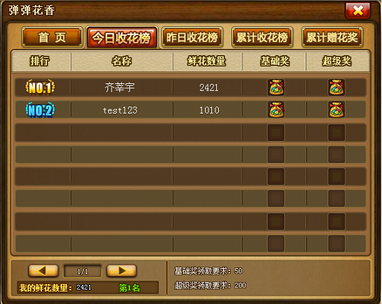 每个收花榜都有基础奖励和超级奖励,满足超级奖励要求可同时获得基础和超级两份奖励。