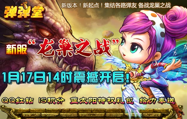 在新版本开战前夕,IS《弹弹堂》新服“龙巢之战”1月17日14时震撼开启。新的起点,新的同伴,集结各路弹友,征战龙巢之穴。