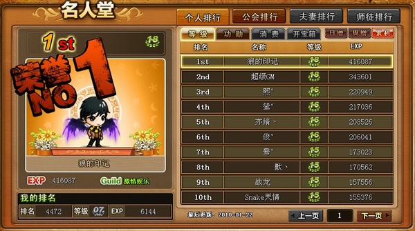 弹弹王国再传喜讯!来自IS的“狼的印记”成功挑战超级GM,获得丰厚大礼,因其在开服后3天内(1月22日名人堂数据)挑战成功,故新服“水晶之恋”玩家可以在