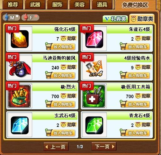 商城免费兑换区开放,不用花钱就能兑换到用点券都买不到的好东西。极武器!强化石!通通都是你的!