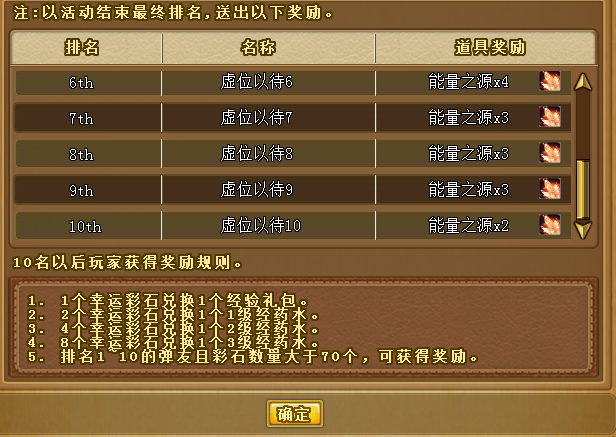 三、“幸运彩石”排名十位以后的弹友,将根据“幸运彩石”数量自动兑换成经验药水。