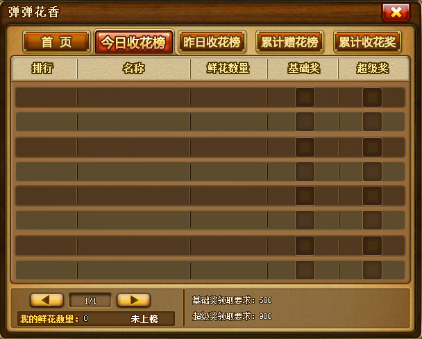 今日收花榜。点击今日收花榜可实时查看今日的收花情况以及可以获得的奖励。