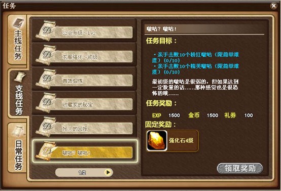 支线任务包含一般支线任务、公会任务、活动任务,每个支线任务只能完成一次。