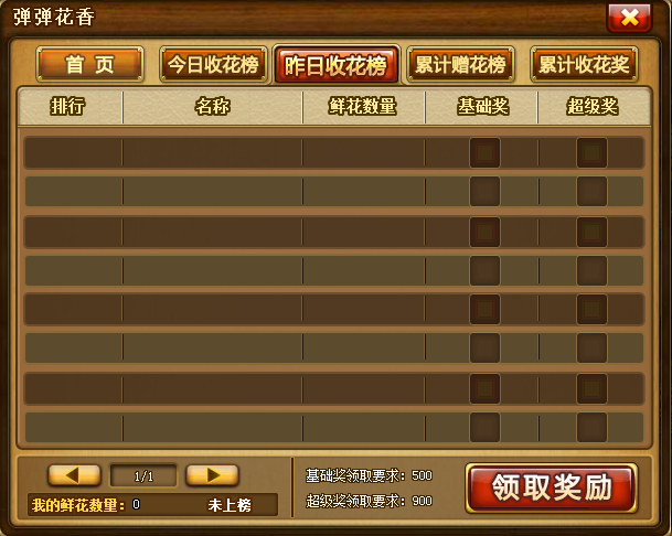 昨日收花榜。点击昨日收花榜可以查看昨日的收花情况以及领取昨日的收花奖励。