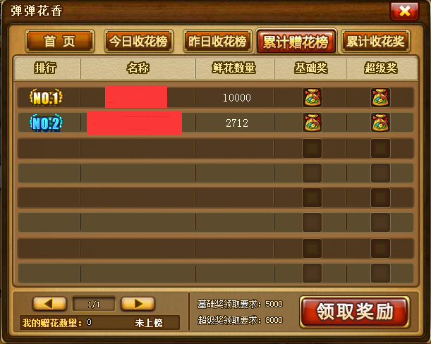 每个收花榜都有基础奖励和超级奖励,满足超级奖励要求可同时获得基础和超级两份奖励。