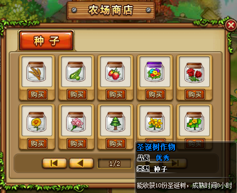 农场商店出售鲜花种子,玩家可以通过种植,获得鲜花。