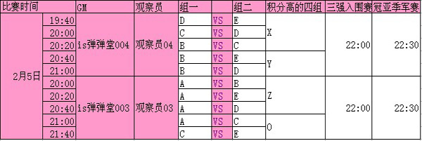 注:若第四、五名出现积分相同情况,则两队再赛一局,具体以现场裁判判定为准。