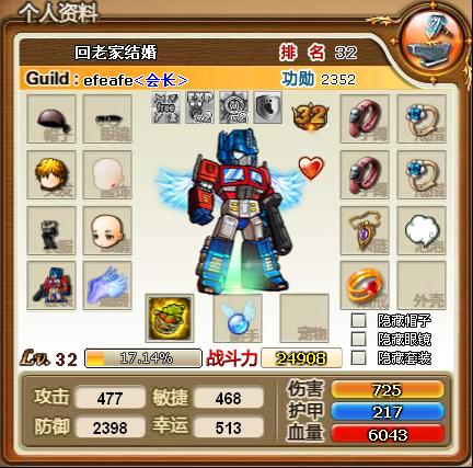 增加战斗力相关显示。在背包角色信息处增加了战斗力、护甲、伤害、血量属性的显示,战斗力与所有属性相关。
