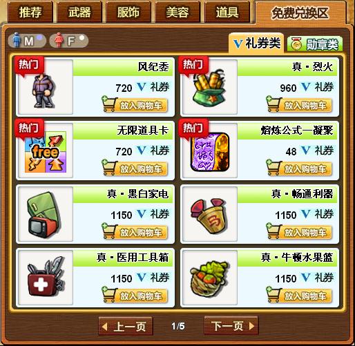 增加绑定货币“礼券”和兑换道具“勋章”。礼券和勋章,用于在商城免费兑换区兑换物品。