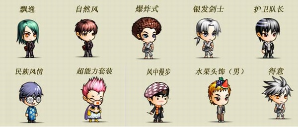 男头发(5款):飘逸、自然风、爆炸式、银发剑士、护卫队长