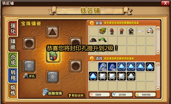 众所周知,宝珠镶嵌能够增加各种效果,如暴击、穿甲等,均有几率在瞬间爆发巨大威力,扭转战局。至2.6版本,铁匠铺装备镶嵌仅开放4个孔,第一个在装备强3时开启,第二个在强6时开启,第三个在强9时开启,第四个在强12时开启,都与强化有关,所以叫做“强化孔”。除此外,余下的两个“封印孔”将在2.7版本中正式开放,并且这两个孔不受装备强化等级影响,所有玩家都有机会体验宝珠镶嵌功能。