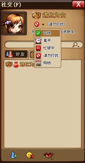 因为有温泉挂机,你不一定时时守在游戏前;因为龙巢副本激烈,你不一定有空回复好友信息……面对这些,你不想拥有一个24时贴身守候的小秘书吗?3.0中 IM社交功能进一步强化,弹友们能像聊天软件一样选择当前状态,也能根据需要设置自动回复,让好友随时了解你的游戏行动。