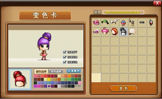 作为Q版休闲游戏,装扮是《弹弹堂》一大特色,弹友们在苦练技术的同时,也会对角色精心装扮。变色卡,是装扮过程中不可或缺的重要道具,它能改变装备、皮肤颜色,让角色更加个性。不过,当你面对五颜六色的调色板挑花眼时,最新开放的还原按钮将派上用场,它能帮你找回装备的原有色调,免除试色时的后顾之忧!