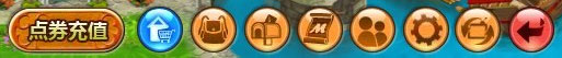上图是游戏中右下角的主选界面,从左往右依次是:点券充值按钮、商城、背包、邮件、任务、好友、设置、跳转、返回。