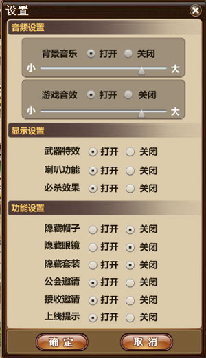 背景音乐:可以对游戏中各处场景的背景音乐音量大小进行设置,可以关闭背景音乐。