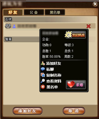 添加好友:点击后,可以将玩家添加为好友。