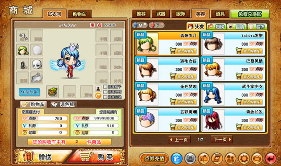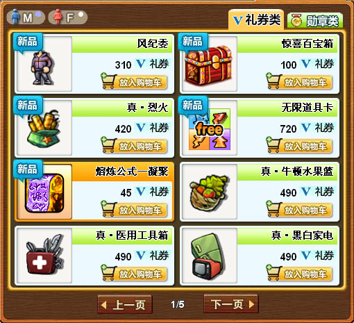 免费兑换区中的商品分为礼券类和勋章类商品,在礼券类商品中可以兑换到部分点券类商品,在勋章类商品中可以兑换到部分点券购买不到的商品。
