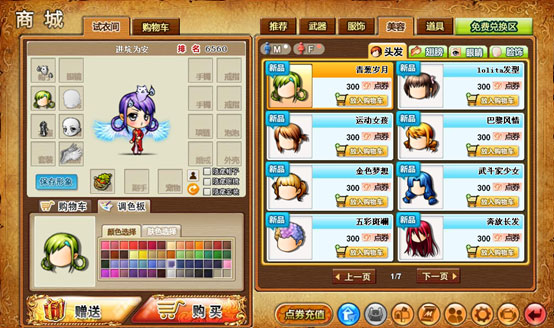 商城中除了推荐、武器、服饰、美容、道具类商品之外,还有一个免费兑换区。在免费兑换区中的所有商品都不使用点券进行购买,免费兑换区的所有商品都是通过使用特定的物品进行兑换获得的。