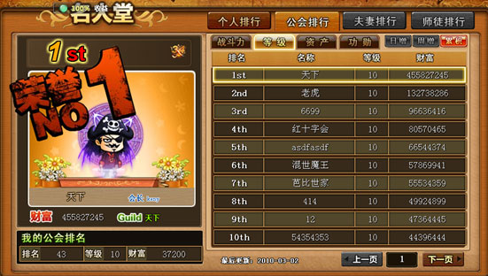 公会排行界面