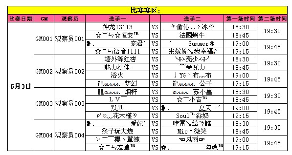 活动内容:经过与弹弹堂厂商确认,按照战斗力及相关比赛排名规律,最终确认比赛对战表。请所有玩家看清比赛时间及对手。以免错过比赛。