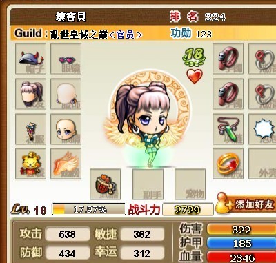叮叮:我是乱世公会的一名成员呀,有一次我们在IS上,我们的会长:亂世メ坏少对公会的成员宣传弹弹堂这个游戏,然后我就在带着这种好奇心点击进了游戏。