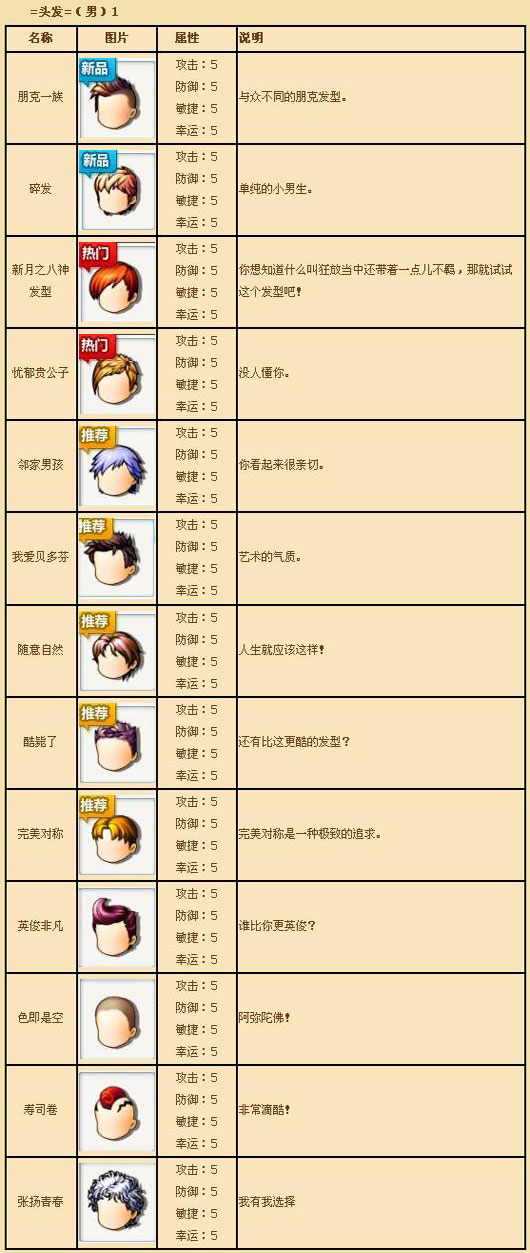 您当前的位置:首页>>攻略>>道具装备-美容-头发(男)