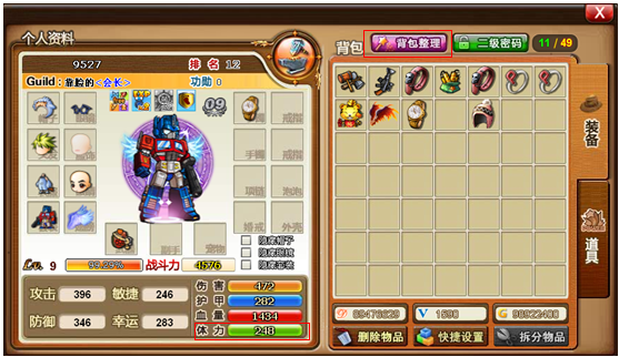 昨天我参加同学聚会,在与一位老同学叙旧的时候,发现我的这位老同学也玩弹弹堂,于是我们就大侃弹弹堂的玩法啊、刷副本等内容。酒过三巡,同学语出惊人,声称自己是弹弹堂工作人员,说道新版本的背包界面会有改变。下面就是我辛苦索要的图片,特上传与大家一起分享下。