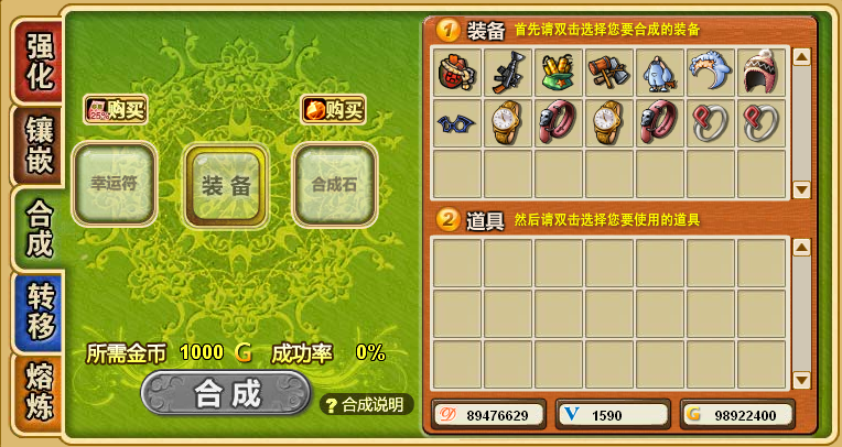 与旧版本铁匠铺不同的是,在新版本的合成功能里,幸运符与合成石上方添加了“购买”按钮,应该与现在的铁匠铺一样可以快捷购买符和石头。其实我最想知道的是在这里购买石头有没有优惠的!