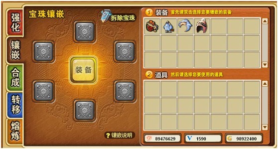 旧版本铁匠铺的镶嵌功能是怎样的?只要镶嵌了宝珠,就不能拆除下来。这点想必给大家带了许多不便了吧。据说新版本将添加“拆除宝珠”功能,我们可以随心所欲地选择拆除宝珠。拆除了宝珠,会是怎样的结果呢?宝珠丢失?装备降级?若装备降级了,宝珠丢失了,新功能有什么用呢?还不如不开发出来呢!!!