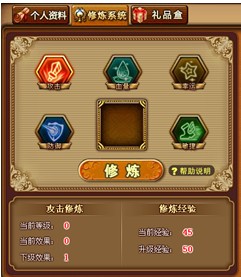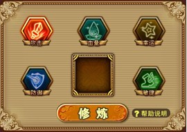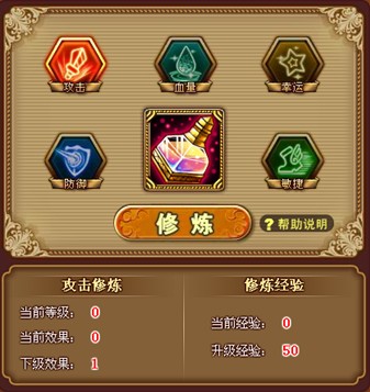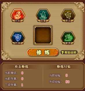 目前通过修炼系统可提升角色的生命、攻击、防御、敏捷、幸运5项属性值。随着修炼等级提高,角色的基础属性也就越高。