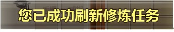 第三,如果不满意当前激活的修炼任务可再次打开背包,继续使用修炼卷轴可刷新修炼任务,刷新成功后获得“您已成功接收修炼任务”提示。